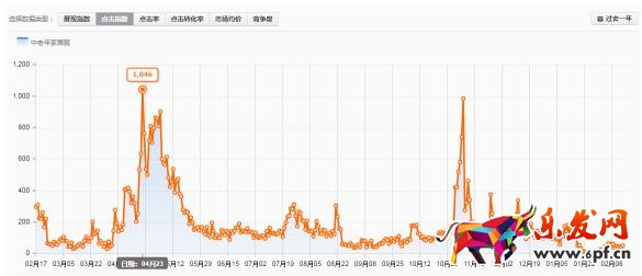 同行競爭力上來說,關鍵詞“中老年家居服”在行業搜索中,點擊指數過去一年中最高為1046個點擊,而競爭度為最高為1191。實際上對比起來,競爭度還是要高于買家搜索點擊數的。那么你如何在同行中脫穎而出?