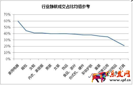 二:不同的類目,肯定靜默轉化率也有很大的差異,例如大家電很容易滿足靜默成交的三個條件(商品與線下一致、店鋪多數品牌自營、服務與線下一致),所以靜默轉化很容易。而例如母嬰、燈具等涉及安全或安裝問題,所以買家即便對商品足夠了解、店鋪足夠信任,依然會有不放心,還是會旺旺咨詢,所以對于這些類目盲目強調靜默轉化,只會帶來大量售后問題(下圖是各個類目靜默轉化的參考值)圖片來源網絡: