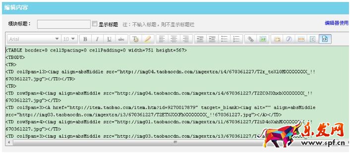 還有一個更為簡單的轉換代碼,只要用瀏覽器打開剛剛PS切片后保存下來的HTML文件,然后點擊右鍵查看源文件,這樣代碼就會在記事本中打開了,復制代碼進入淘寶自定義模塊進行編輯就好了,方法很多,我也不細說了。