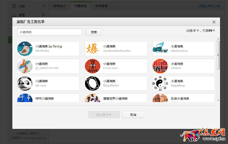 這里還可以進行廣告主黑名單設置。如果你覺得有些廣告與自己的內容氣質不匹配,完全可以屏蔽啦。以馮大輝同學的小道消息為例(壞笑),如下圖: