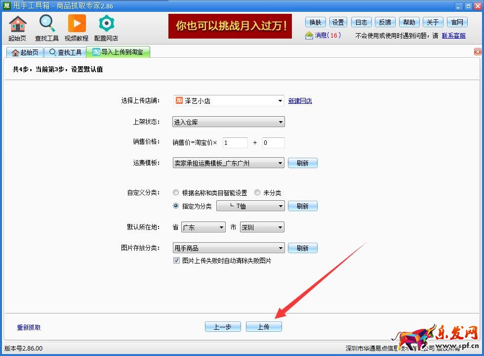 3.抓取完直接上傳到淘寶店鋪倉庫