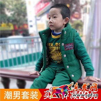 如下圖,為“潮男套裝”加上一個稍大的方塊,再添加一個投影效果,大大增加了立體感,讓買家第一眼就集中在“潮男套裝”這四個字上。