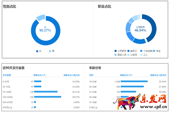 搜索后,看最近30天的數(shù)據(jù)。你能夠看到很多跟店鋪標(biāo)簽相關(guān)的人群屬性,比如性別、年齡、收入狀況、職業(yè)等等。