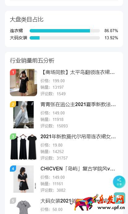 比如說這個關鍵詞下的市場,日單品總銷量、銷售額、 收藏數,以及各個價格區(qū)間的銷售額數據都可以看到,根據這些數據可以大致判斷一個市場的好壞,同時也可以去監(jiān)控這個大盤,天也會自動推送報表給你,這樣你就可以清晰知道自己行業(yè)數據的漲幅。