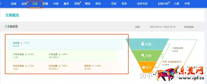 這個有很多種方法,比如首頁品類等都可以,這里直接說最容易的,點擊上方交易,日期可以選擇月份或者天數(shù),可更直接的看到一個月的基本數(shù)據(jù),訪客數(shù),下單買家數(shù),產(chǎn)值,客單價等,
