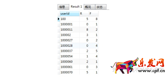 由于數據源沒有相關的金額數據,暫且通過 R 和 F 的數據對客戶價值進行分類。