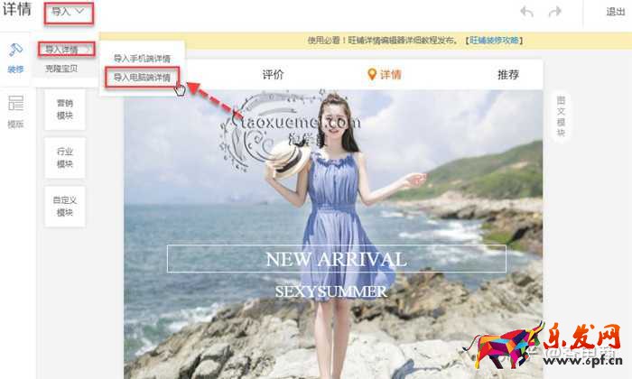 2、如果手機詳情還沒有內容,可以點擊左上角的【導入】,彈出的菜單中,繼續點擊【導入詳情】,彈出的菜單中點擊【導入電腦端詳情】,