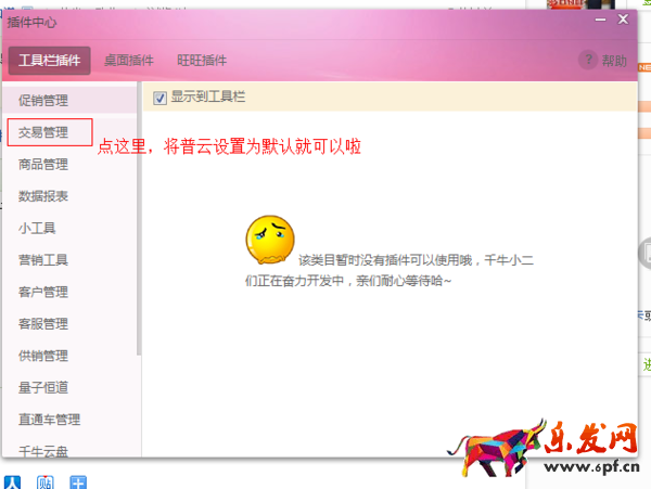 3、進入插件中心,在左邊選擇“交易管理”;