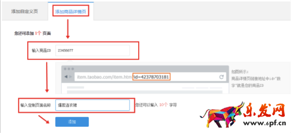 1、添加商品詳情頁(yè),通過(guò)輸入商品ID->按照自己的意愿命名頁(yè)面->點(diǎn)擊添加,即可完成;
