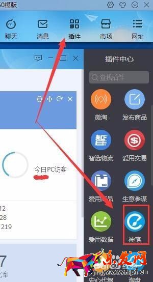 3、打開(kāi)千牛,進(jìn)入右側(cè)插件,打開(kāi)神筆;