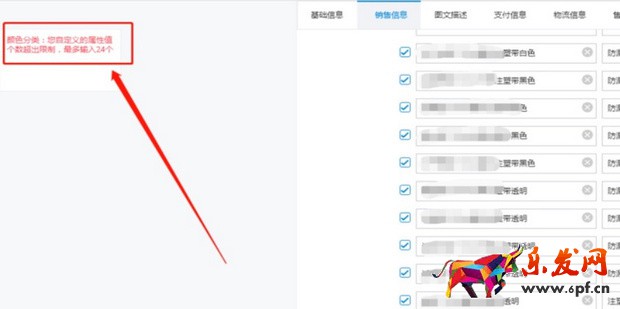 發布寶貝時,選項超過24個自定義選項時,將發布不了。