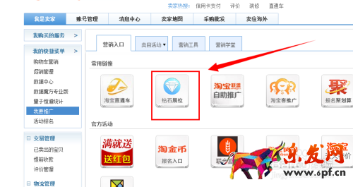 2 然后在“賣家中心”----“我要推廣”-----“鉆石展位”。