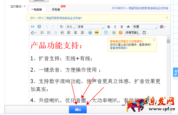 4、確認(rèn)生成手機版詳情后直接點擊藍(lán)色字體的確認(rèn)即可發(fā)布手機產(chǎn)品詳情。
