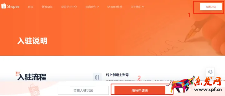 進(jìn)入Shopee官網(wǎng),點(diǎn)立即入駐,點(diǎn)查看入駐記錄
