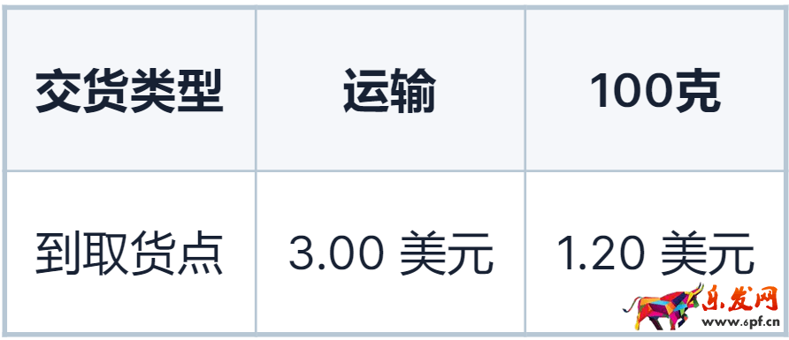 運費為3美元(申報費)+1.20美元 * 1(如果包裹重量為100g,則乘以1),即一個100克的包裹需要需要支付4.2美元運費。