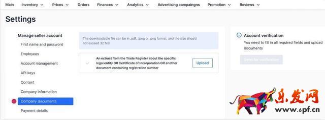 3:提交公司證件 這是必要內容。您需要在“Company documents”欄目中上傳一個列別中的文件,否則您將無法提交審核申請。 在公司證件 (“Company documents”)欄目中,需要以PDF、JPEG或PNG格式上傳以下證件之一: