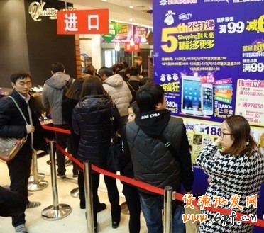 據(jù)店方工作人員介紹,此次活動涵蓋了 巴黎春天 所有門店,記者在微博上發(fā)現(xiàn),由于五角場旗艦店、浦建店毗鄰大型的居民社區(qū),店面面積更大,因此也吸引了更多顧客。記者通過微博看到,有心急的網(wǎng)友已經(jīng)曬出來辛苦換來的“土豪金”手機。網(wǎng)友“桃子_D”是昨晚五角場店的vip顧客,她在微博中這樣寫道:“在這樣一個寒風(fēng)肆虐的夜晚,在這樣一個感恩夜的最后時分,感謝老媽辛苦陪我追隨大商場的瘋狂折扣,終于拿到蘋果土豪金一枚。”在回復(fù)和評論中“桃子”也坦言,排隊時間長,于是和母親分開排隊,自己排在領(lǐng)取手機的一邊,母親則負(fù)責(zé)買單。
